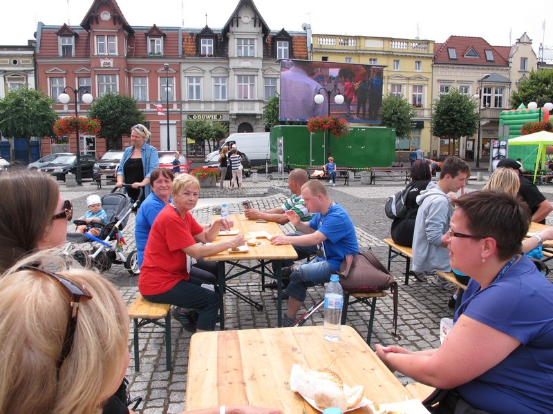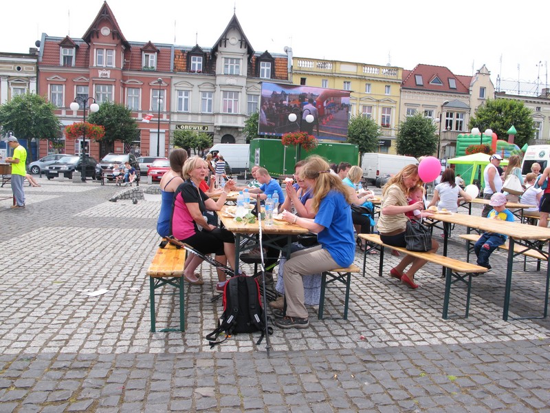 A po dotarciu na metę: medale, kwiaty dla Pań, kiełbaska z bułą, „szneka z glancem” i „pyra z gzikiem” 😉 + Woda, owoce i uśmiechy od wszystkich…